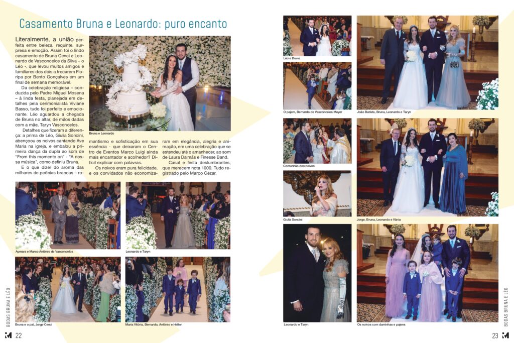 Da celebração religiosa – conduzida pelo Padre Miguel Mosena – à linda festa, planejada em detalhes pela cerimonialista Viviane Basso, tudo foi perfeito e emocionante. Léo aguardou a chegada de Bruna no altar, de mãos dadas com a mãe, Taryn Vasconcelos.