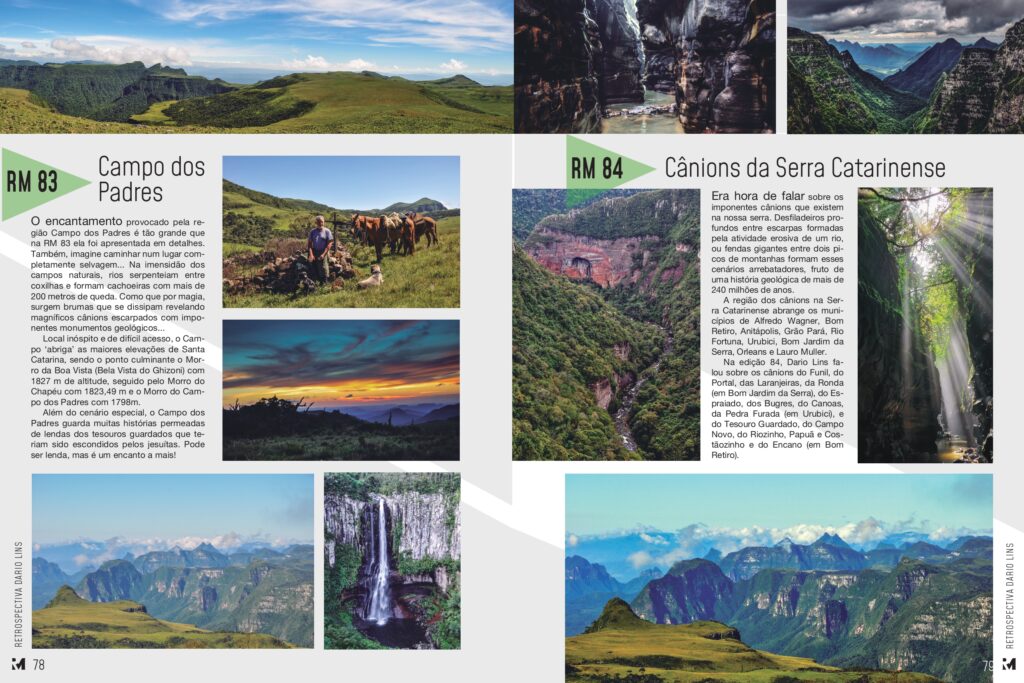 Na edição 84, Dario Lins falou sobre os cânions do Funil, do Portal, das Laranjeiras, da Ronda (em Bom Jardim da Serra), do Espraiado, dos Bugres, do Canoas, da Pedra Furada (em Urubici), e do Tesouro Guardado, do Campo Novo, do Riozinho, Papuã e Costãozinho e do Encano (em Bom Retiro).