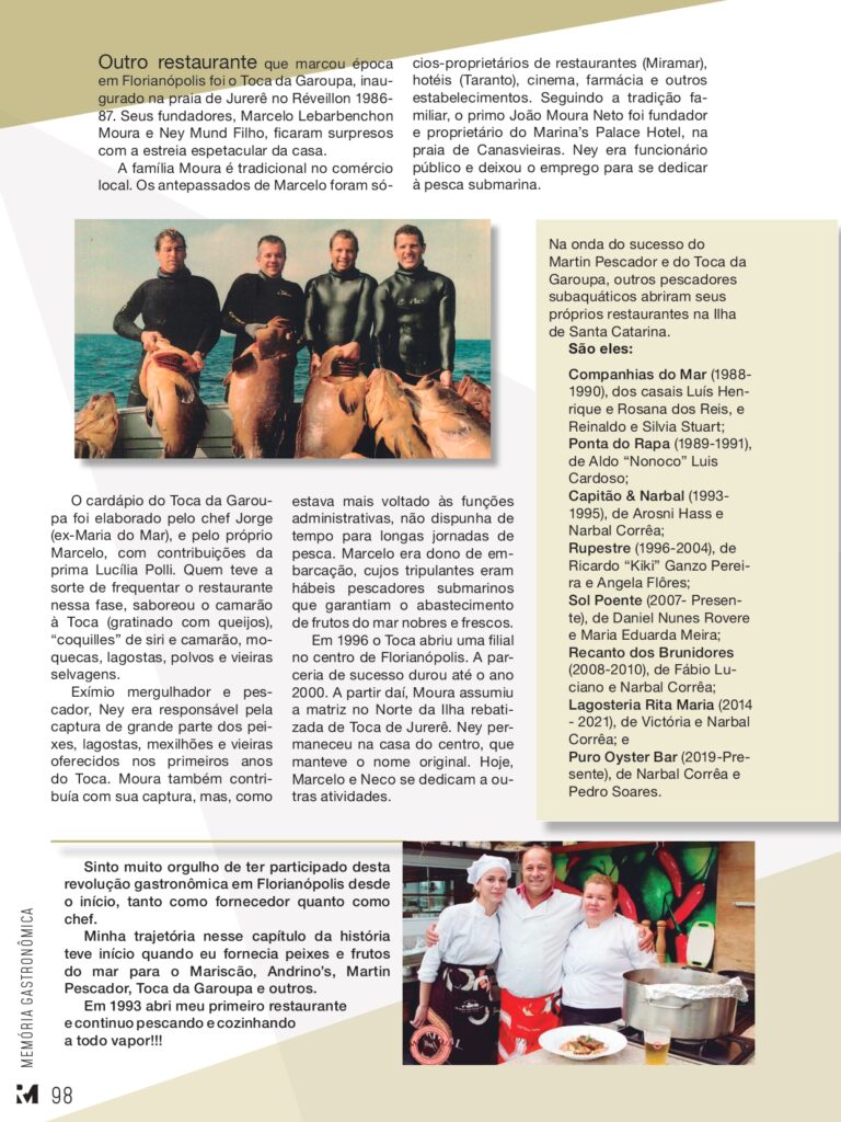 Santa Catarina é, sem dúvida, um estado gastronômico, e os pescadores subaquáticos têm participação ativa no processo de conquista desse status … aqui, seguramente, surgiu uma das primeiras cozinhas “fusion” do mundo. E as memórias do Narbal Corrêa estão aí para relembrar um pouco dessa história.